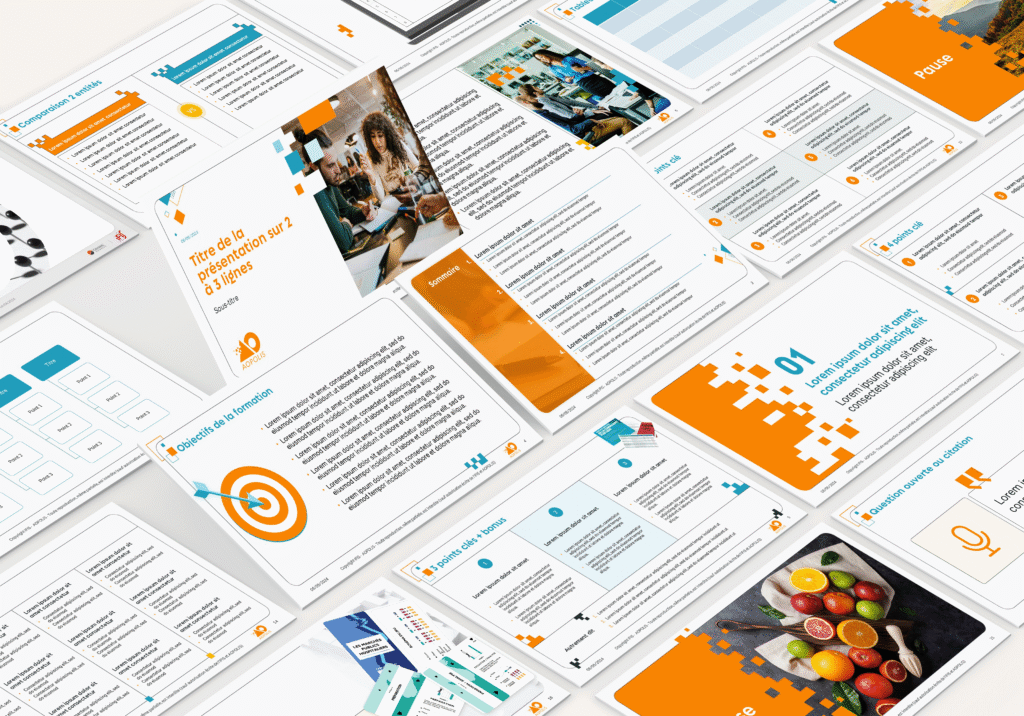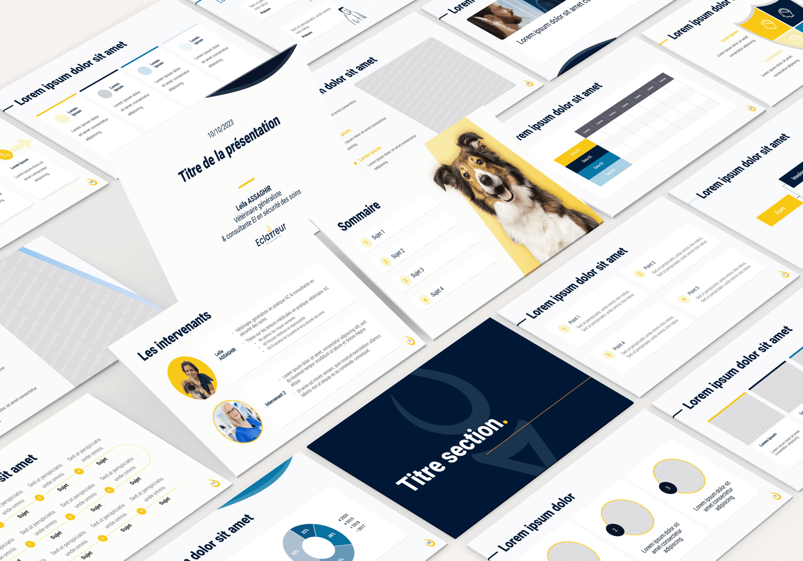 Vous me fournissez des exemples de présentations. Je conçois un template prêt à l’emploi pour vous permettre de gagner du temps et harmoniser toutes les présentations. (PowerPoint, Google Slides ou Canva)