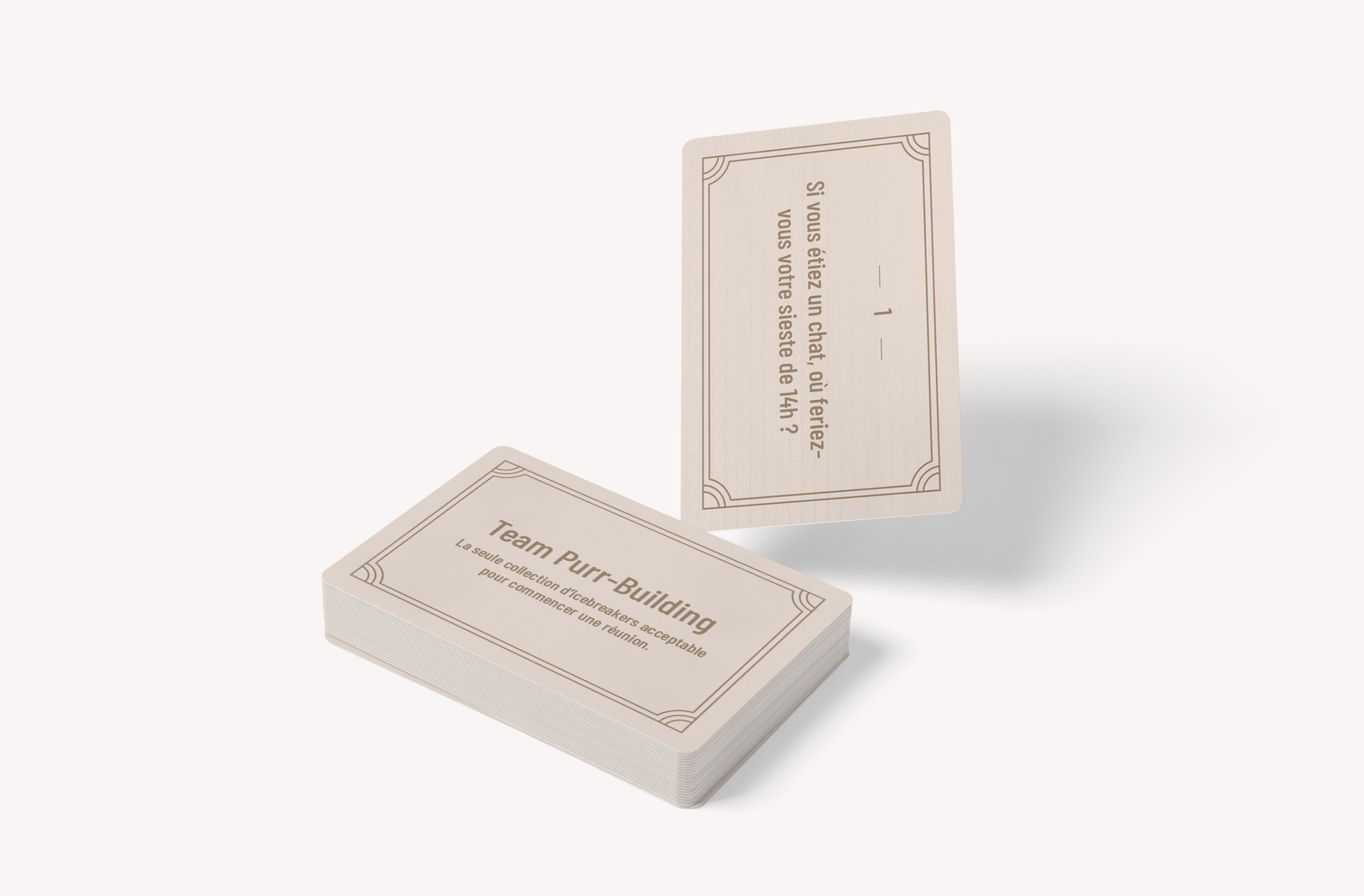 « Team Purr-Building » est un jeu de cartes conçu pour les managers, formateurs et facilitateurs permet de briser la glace et déclencher le sourire en réunion, atelier ou workshop — grâce à l’arme secrète absolue : les chats.